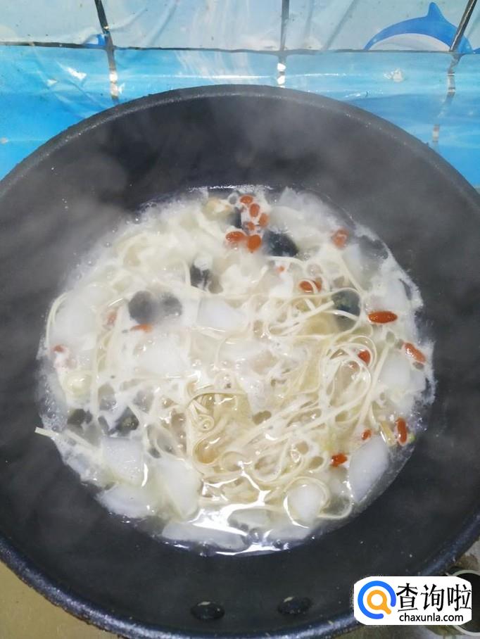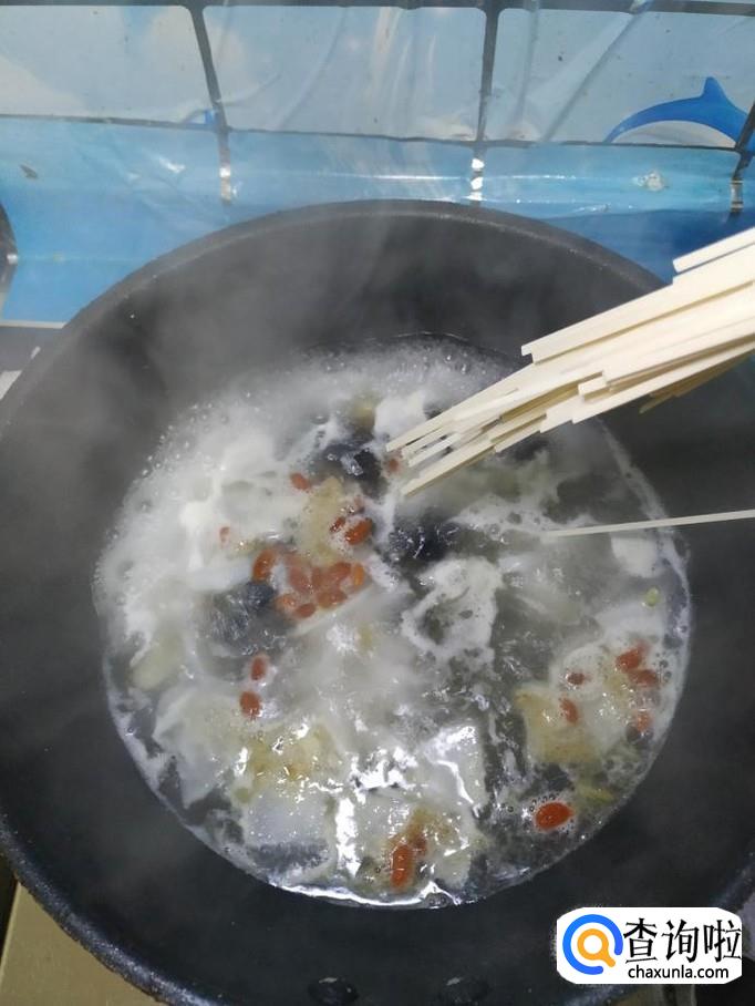 加入适量的清水,然后将准备好的枸杞子也倒入锅中,大火将水烧开。
