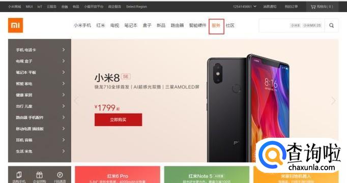 首先我们来到小米的官网,在顶部导航栏中点击“服务”选项,如图。