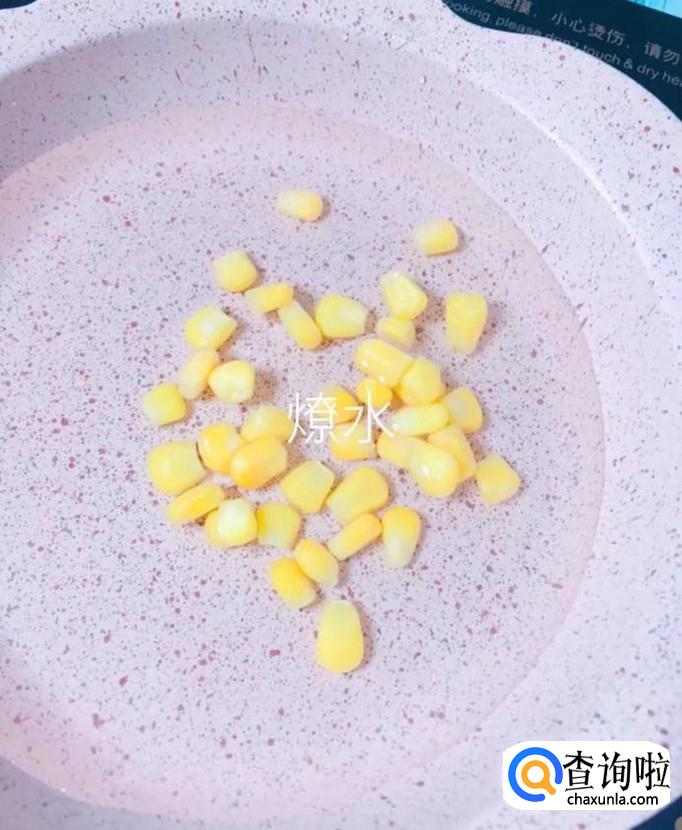首先锅中放入适量的清水,待水烧开,倒入玉米粒烫三分钟,如下图所示。