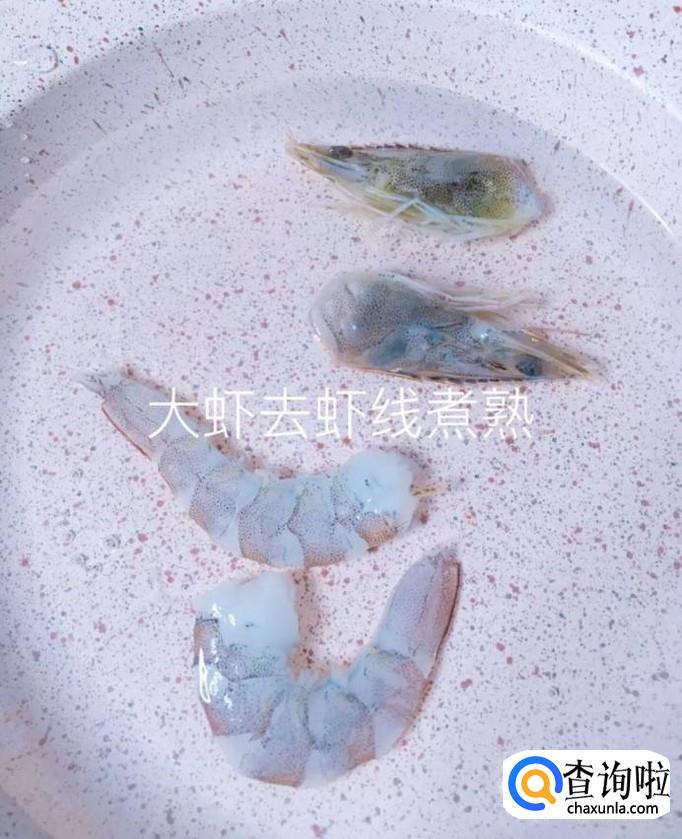 接着将虾去头去尾去虾线,煮熟,如下图所示。