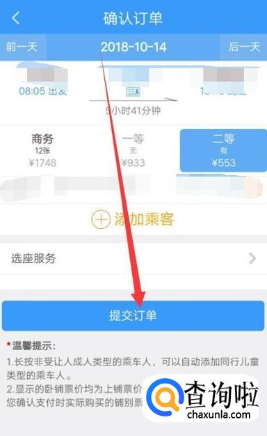 勾选乘客,点击“完成”,进入下一页面,如图所示。