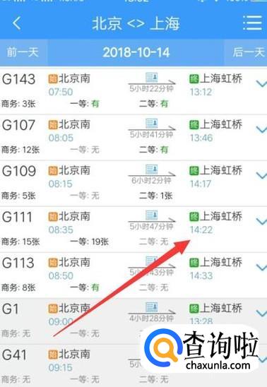 进入之后,选择自己想要乘坐的车次,如图所示。