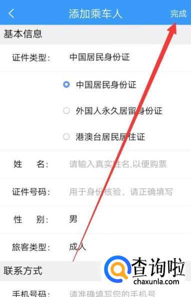 进入之后,将别人的信息添加上,点击完成,如图所示。