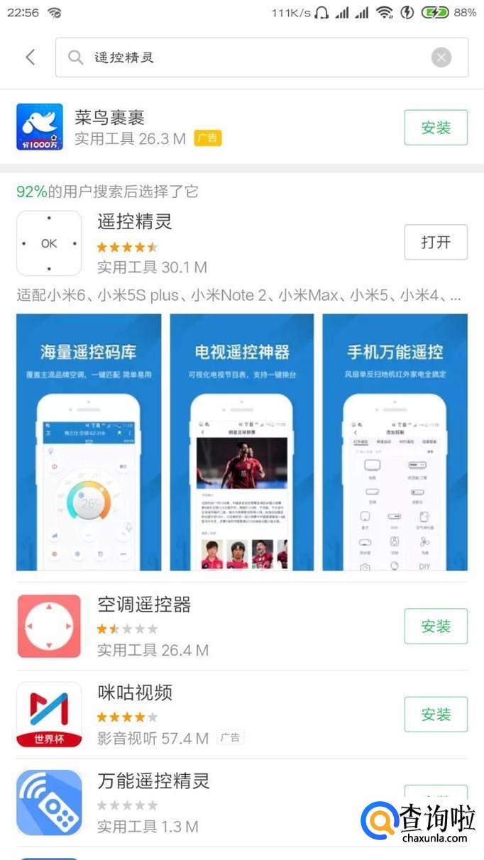 小米手机本来是自带有一个万能遥控的,但是那个应用不好用,在此我推荐使用遥控精灵,各大应用市场都有。