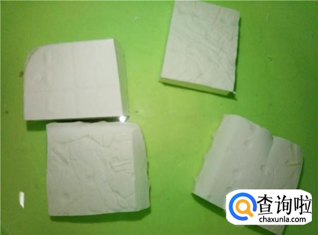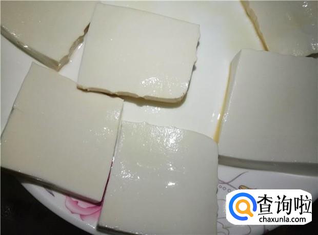 豆腐放清水中清洗一下,切成薄片,铺在大盆子上。