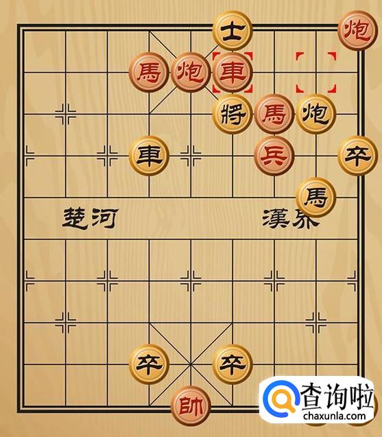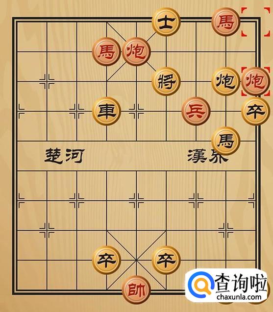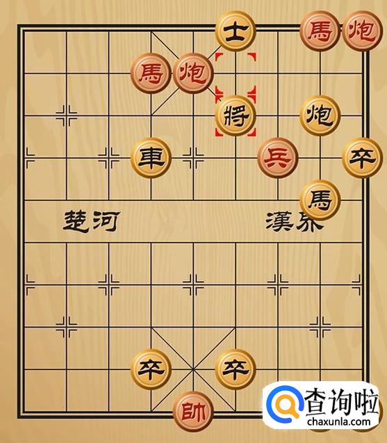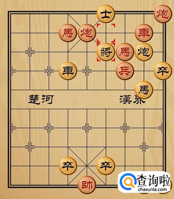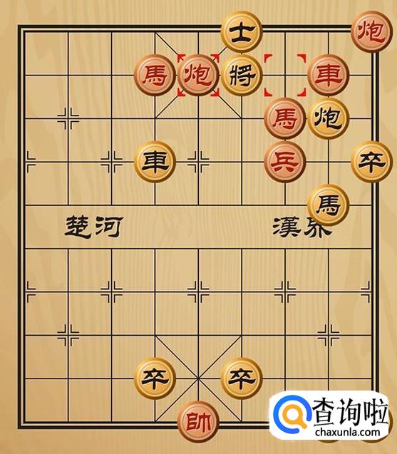 红方先走炮三平五吃掉黑方的士,形成车将军的棋局。