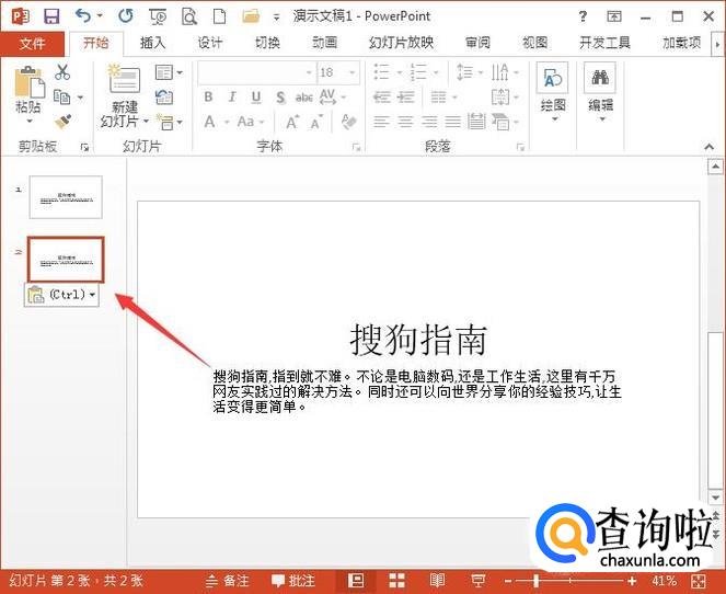 点击粘贴选项之后可以看到我们就复制了一个幻灯片,如图所示: