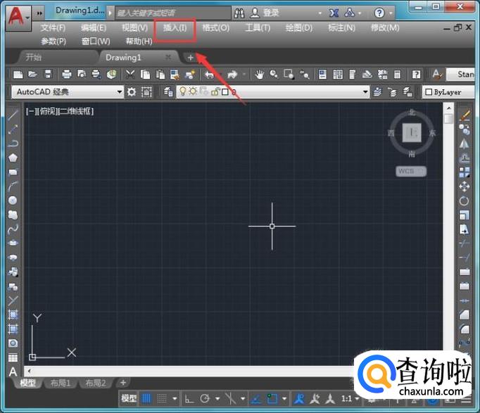 打开CAD之后在菜单里找到插入选项,如图所示: