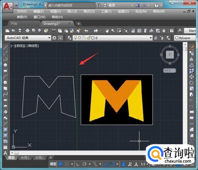 输入比例因子之后将图片插入进来了,然后再在工具箱内找到多段线选项,如图所示: