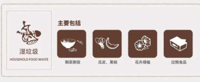 湿垃圾(有机垃圾):即在自然条件下易分解的垃圾,包括食物残渣、菜根、菜叶,动物蹄、角、瓜皮、果屑、蛋壳、鱼鳞、蛋壳、毛发、植物枝干、树叶、杂草、动物尸体、牲畜粪便等。