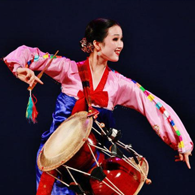 长鼓舞是瑶族、朝鲜族的舞蹈,在舞蹈中,两只手同时击打鼓的两面。一只手用一尺长的鞭敲打着高音鼓面,另一只手拍打低音鼓面,由于鼓的音高不同,节奏也不同,变化多端的鼓点和着优美的舞姿,使人格外的兴奋和愉悦。
