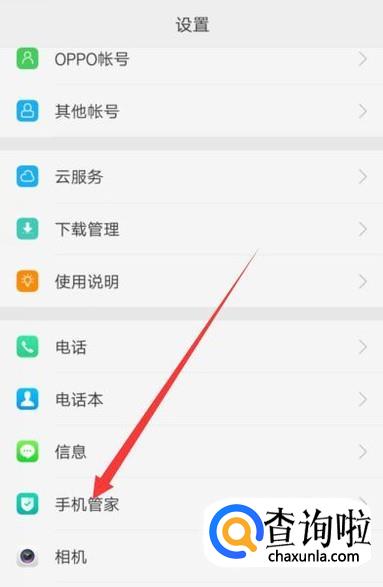 进入设置界面之后,向下拉动界面找到“手机管家”点击并进入,如图所示。