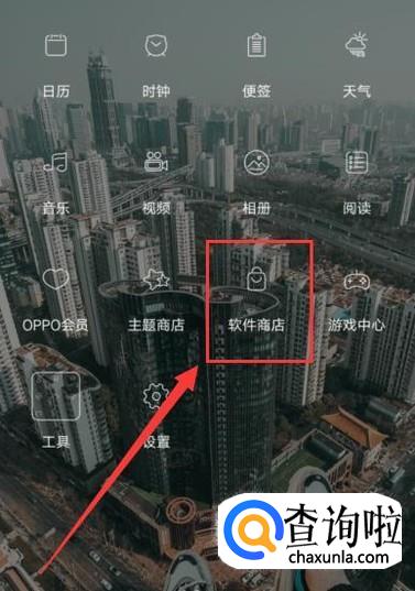 在手机主页面,找到软件商店,点击并进入,如图所示。
