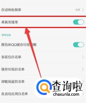 进入手机管家设置之后,即可将加速球关闭,如图所示。