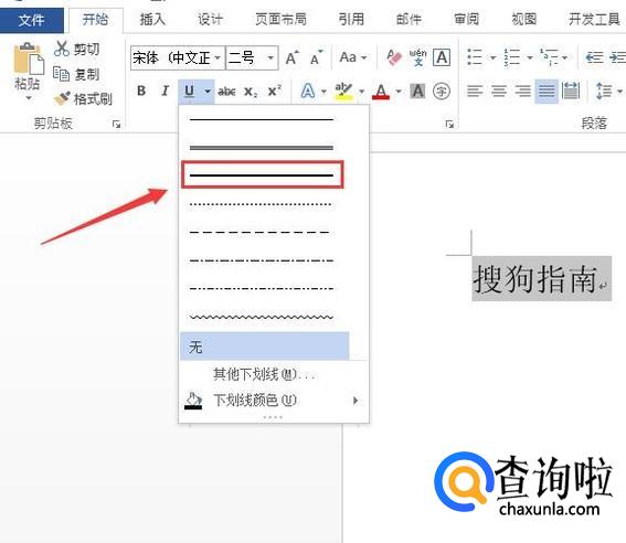 选择输入的文字在字体里找到下划线选项,如图所示: