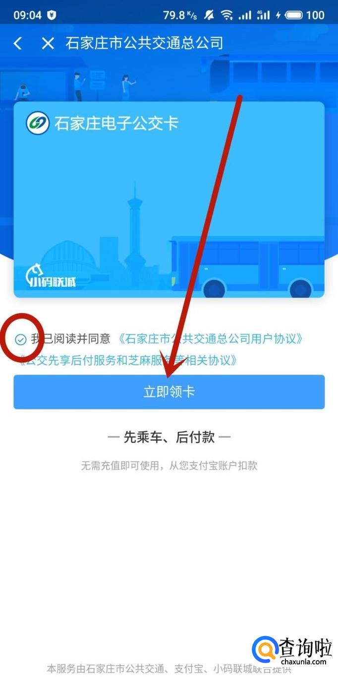 进入之后,勾选同意协议,点击“立即领卡”,如图所示。