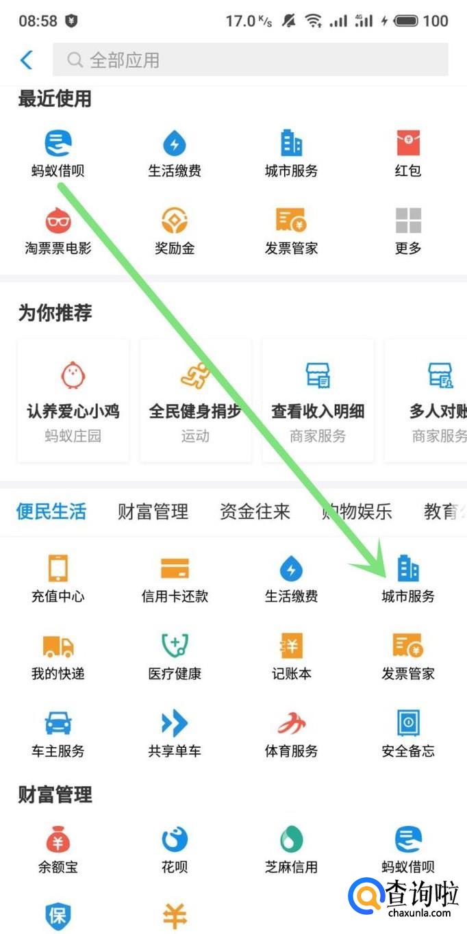 公交车使用支付宝扫码,需要进入城市服务,开通电子公交卡,在乘坐公交车的时候,点击支付宝首页的“付钱”,将付款码在扫码区域刷一下即可。以下用安卓系统的支付宝(10.1.60版本)操作演示一下。
