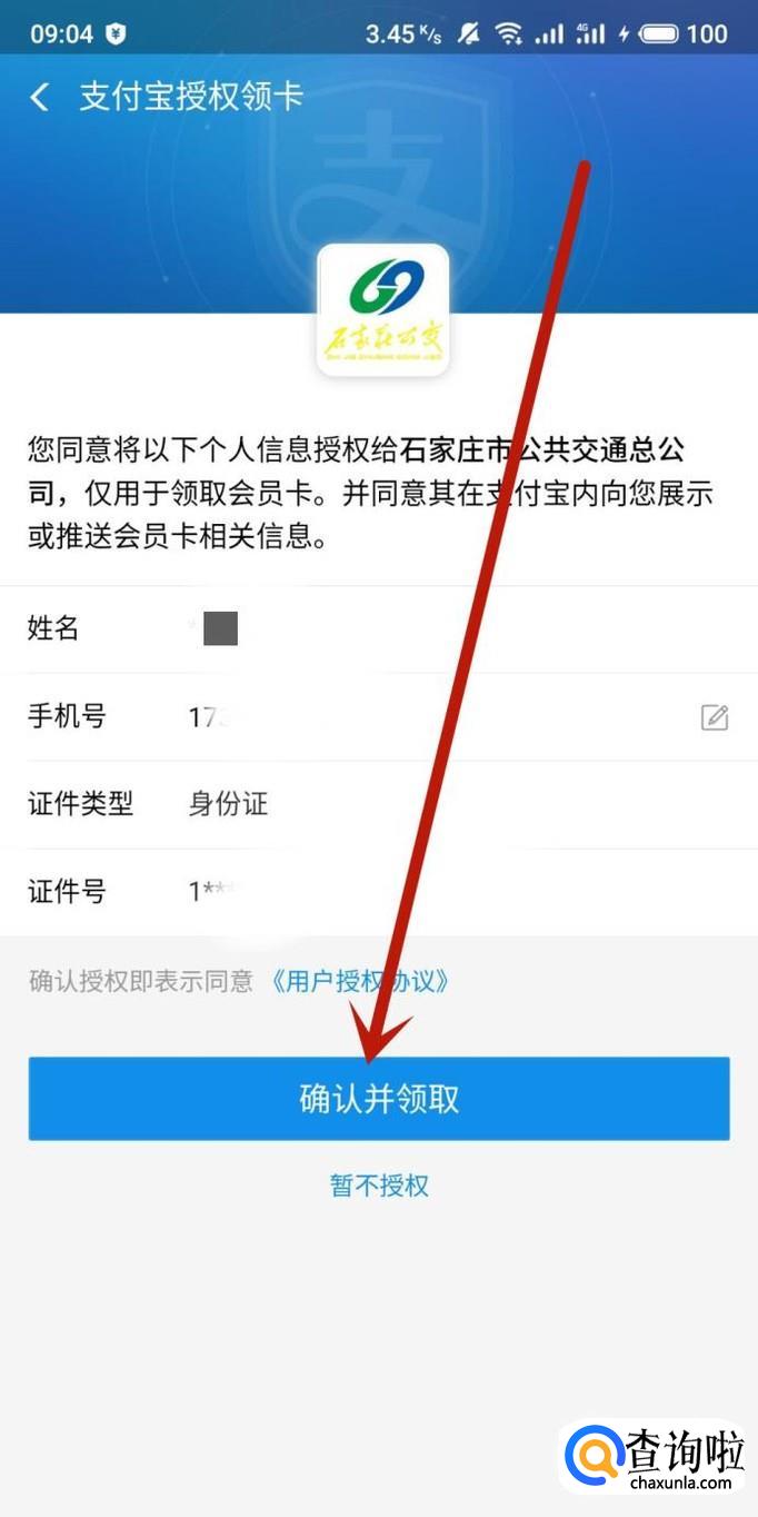进入之后,点击“确认并领取”即可完成领取电子公交卡,如图所示。