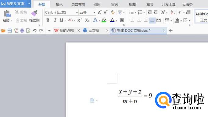 首先,我们打开一个空白的WPS Word文档,并输入公式做演示用,如图所示。