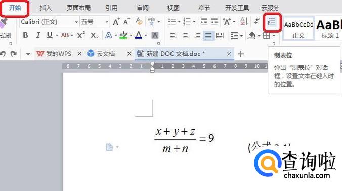 光标分别移到公式和编号的前面,按“Tab”键,这样,公式居中,编号靠右就设置完成了,效果如下图所示。