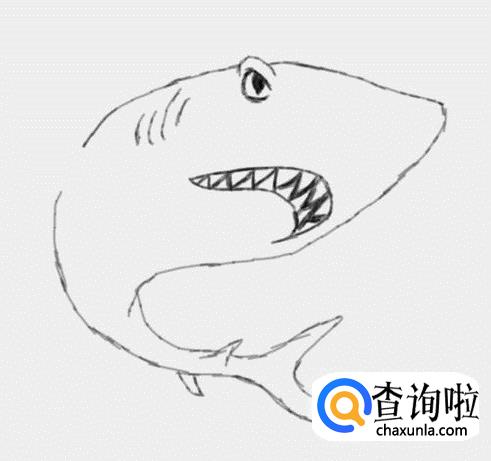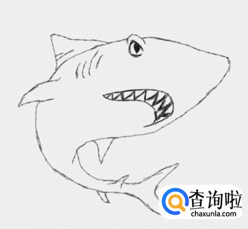 最后在鲨鱼的身体上画出鳍部,这样多妈简笔画大鲨鱼就画好了,如图所示: