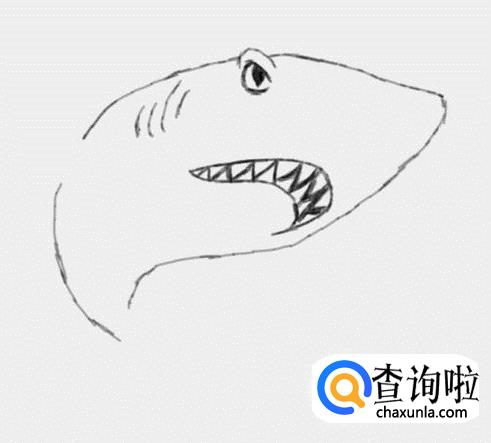 再在鲨鱼的眼睛下面画出鲨鱼的嘴巴,并在嘴巴内再画出鲨鱼的牙齿,如图所示: