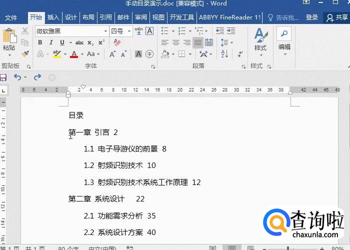 进入【引用】-【目录】-【手动目录】,这样就可以直接插入目录,修改目录上的内容即可。