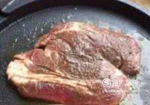 准备一平底锅,开火后加入一点点油,放入腌制好的牛排小火慢煎。