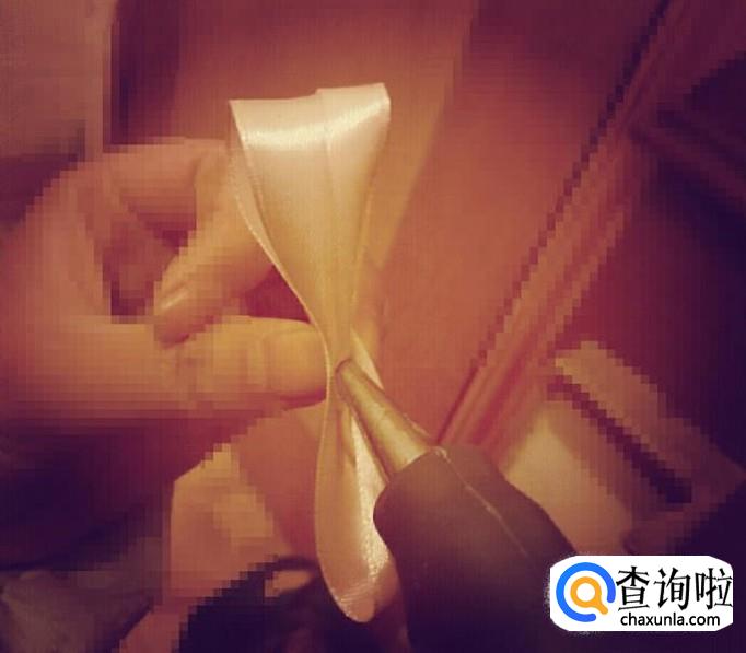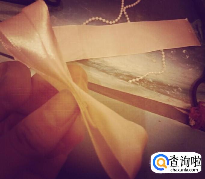 把丝带折成合适的宽度绕在蝴蝶结上,末端要粘好,不要松了。