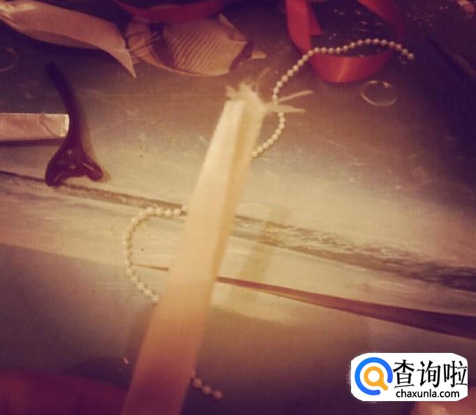 我准备了一根丝带,一串小珠子,一把胶枪 ,一把剪刀,一个发夹。