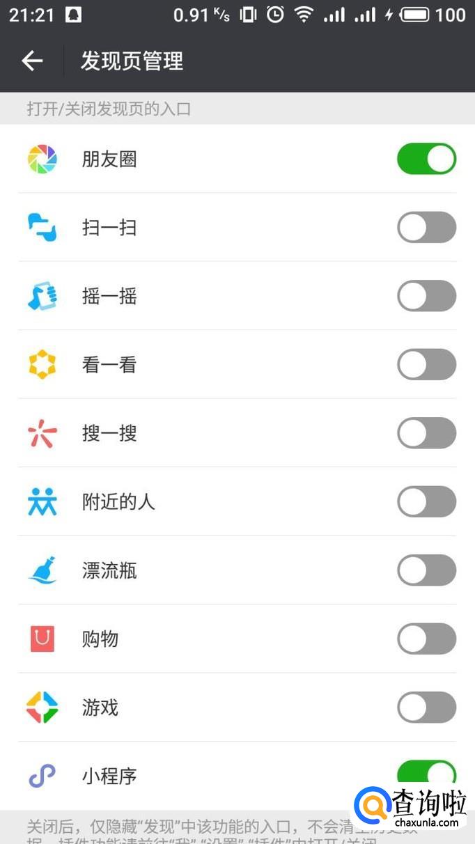 在发现页管理中,将“附近的人”右侧滑块开启。