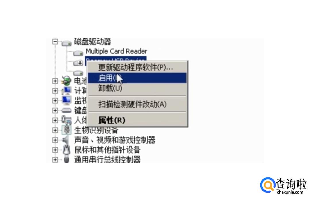 右键,点击“启用”。再去看看能不能打开u盘,不能拿就是u盘坏了。
