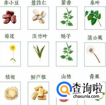 薄荷 藿香 赤小豆 山楂 绿豆 甘草 薏苡仁 桑叶 菊花 金银花 蒲公英 鱼腥草 桔梗