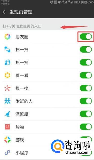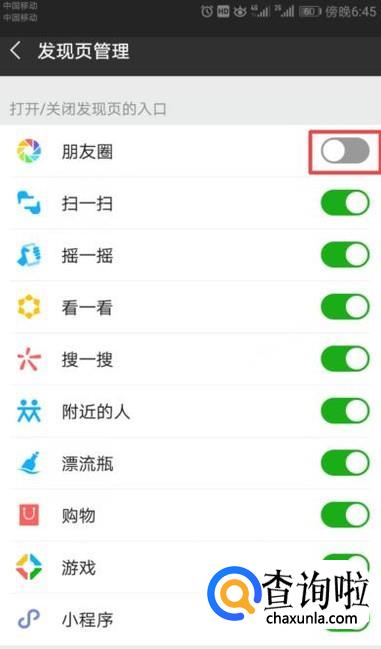 最后,我们将朋友圈的开关向左滑动关闭,这样我们就设置好了。还是比较简单的,相信大家现在都会了。