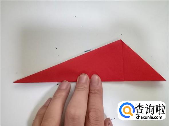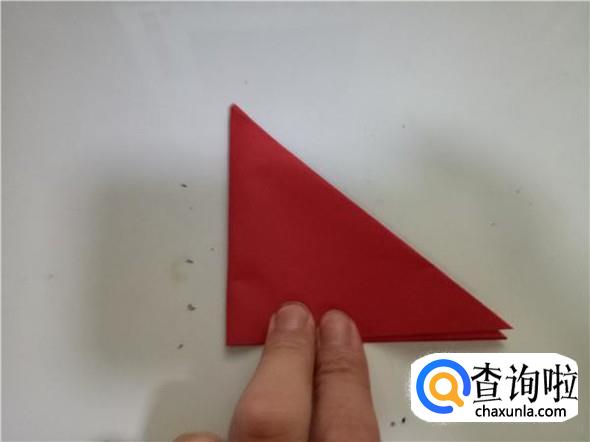 将纸的长边和短边对齐,折出一个三角形,如图所示。