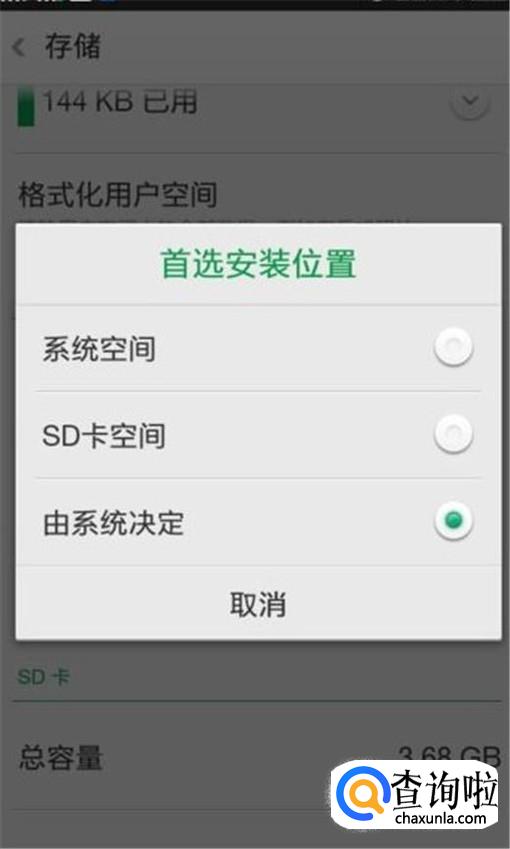 然后选择应用的首选安装位置,设定为”SD卡空间“。