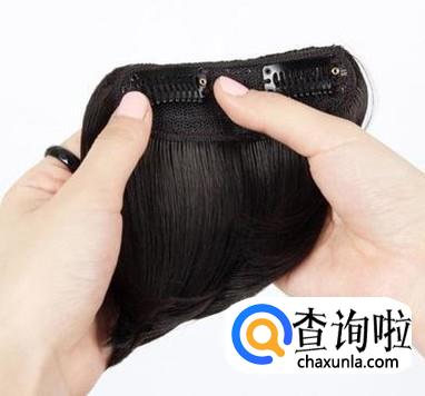 再找一个小的发夹,最好是黑色,这样不会显得别扭,将这个小夹子用针线缝在布条上面,缝的时候顺便再用线来固定头发。