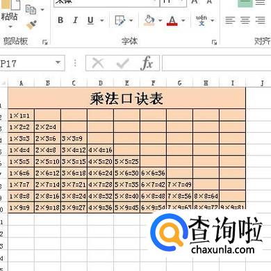 如何使用excel制作乘法口诀表