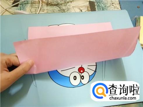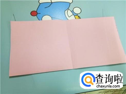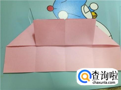 这样就会形成一个长方形,我们再沿着它的长边的中轴线进行对折,再把它放回长方形的样子。
