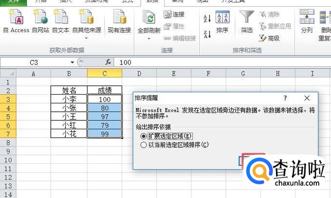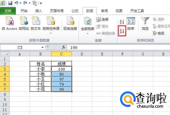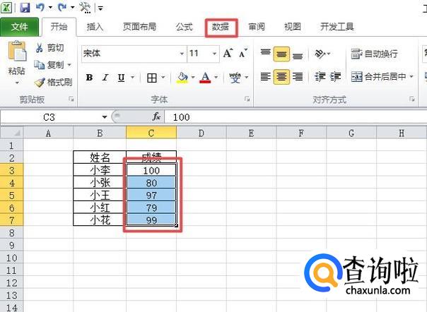 然后我们选中成绩的区域,之后我们点击数据;