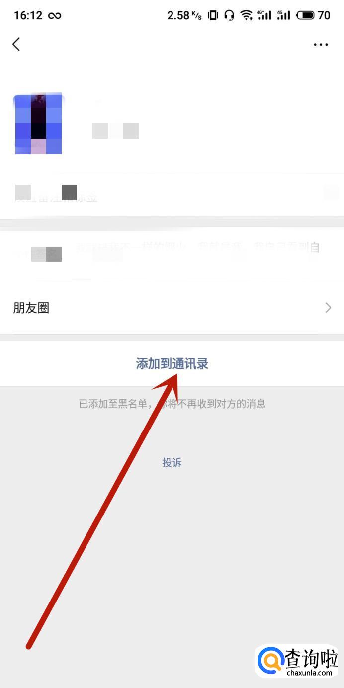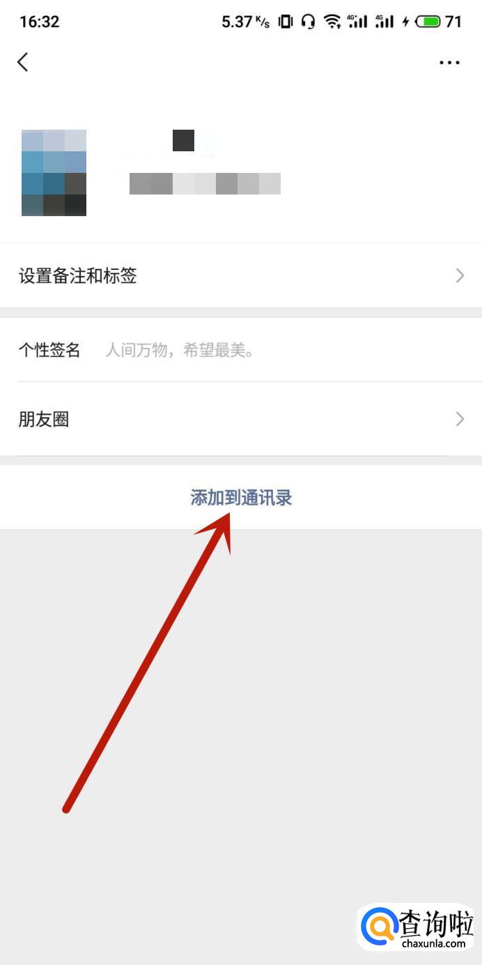 进入之后,点击“添加到通讯录”即可。