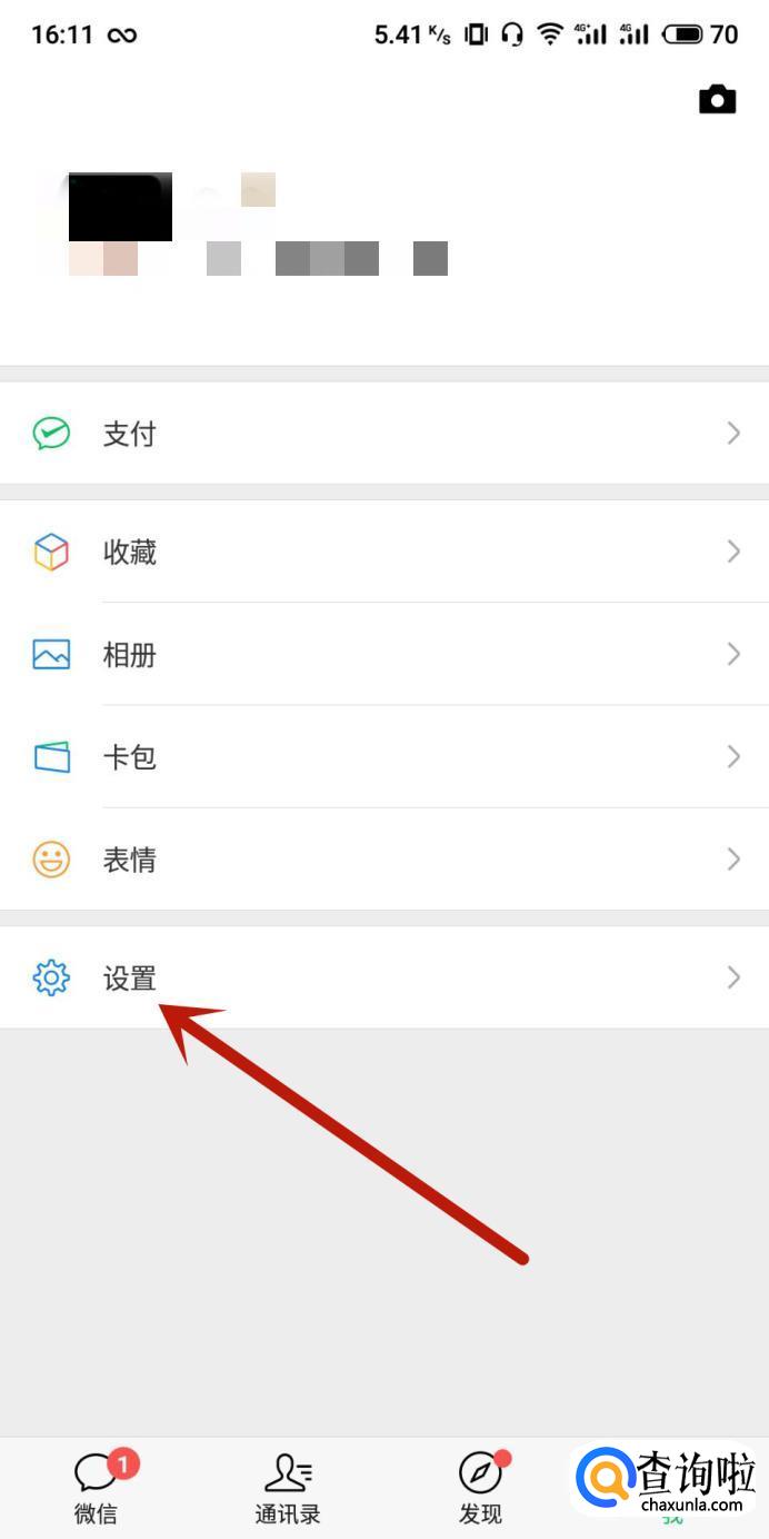 在微信“我”页面,点击“设置”,如图所示。