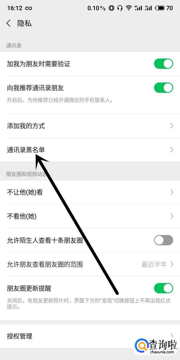 进入之后,点击“通讯录黑名单”,如图所示。