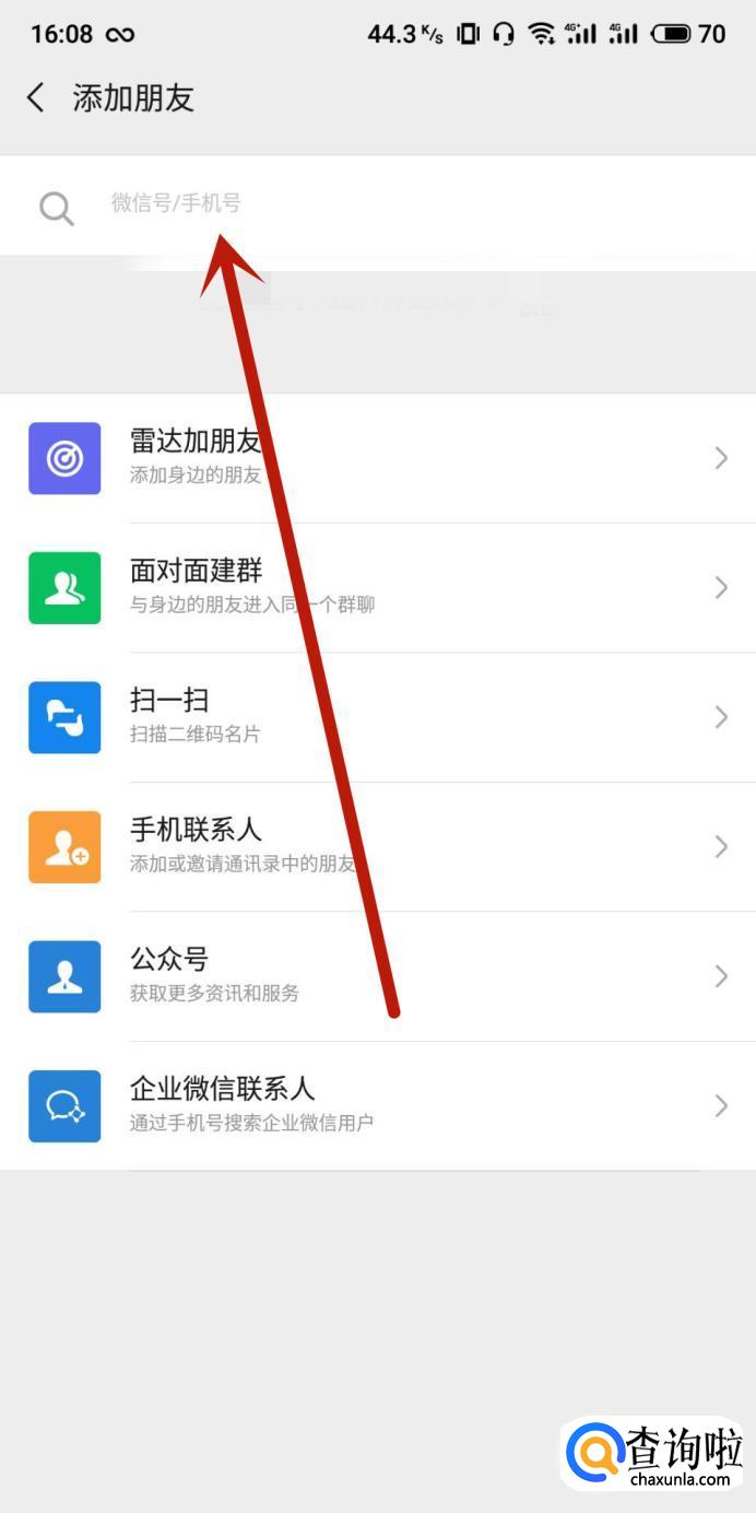 进入之后,在图示位置输入需要恢复好友的微信号,点击搜索。