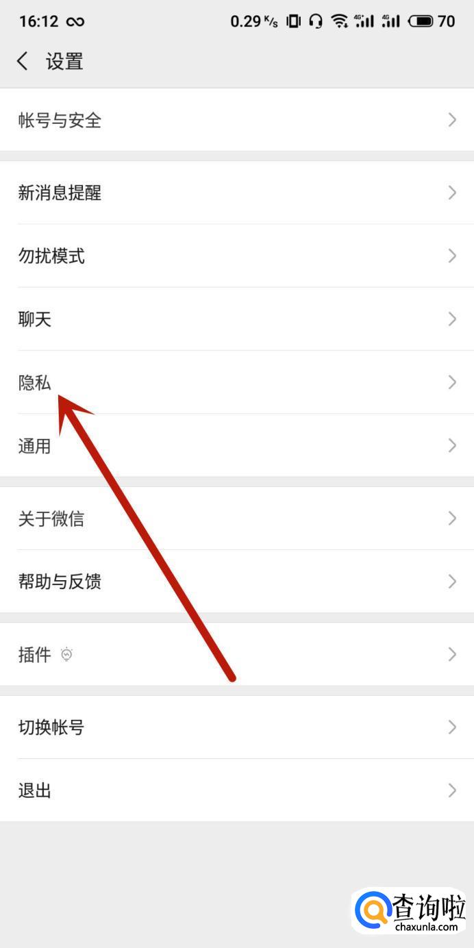 进入之后,点击“隐私”,进入下一页面。