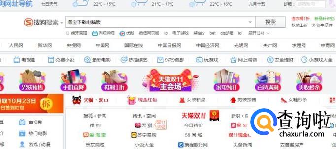 打开电脑浏览器,在搜索栏输入“淘宝下载电脑版”,进入搜索界面。