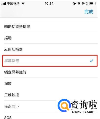 找到【屏幕快照】,点击【完成】即可成功添加。