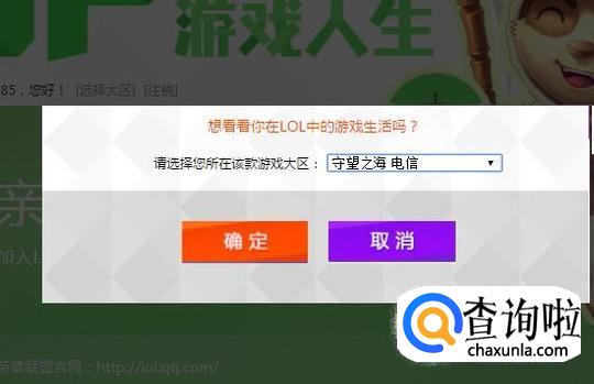 然后选择你的游戏大区并点击确定,如下图所示。