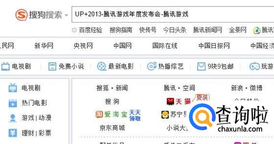 首先,在出口浏览器中输入UP+2013-腾讯游戏年度发布会-腾讯游戏并点击回车键,如下图所示。