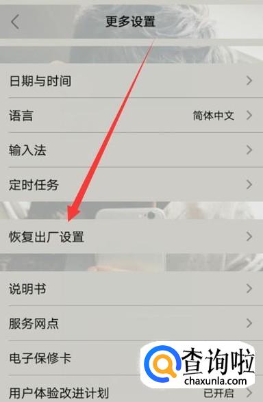 进入之后,点击“恢复出厂设置”,进入下一页面,如图所示。